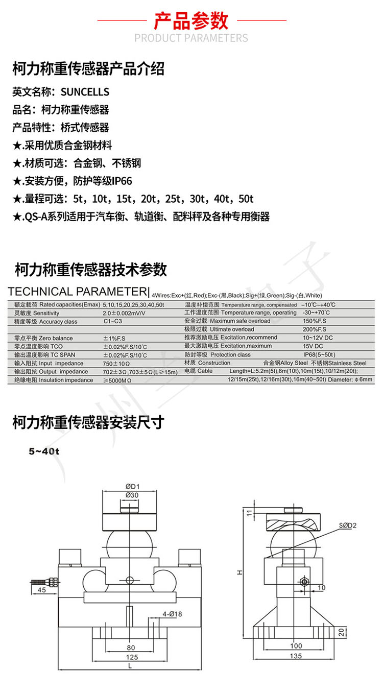 SUNCELLS QS-D-20T称重传感器产品简介: